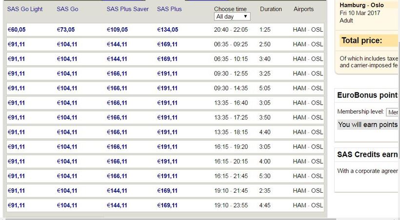 Да, рейс всего один, но зато без пересадок. Следующая на очереди Scandinavian Airlines, вот что я нашел на ее сайте:
