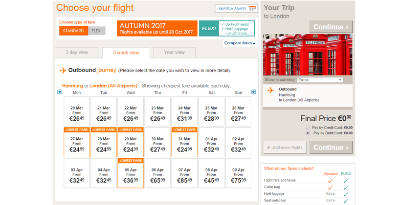 Билет на самолет авиакомпании Ryanair стоит от 12,99 евро. Правда, в стоимость входит только перелет без провоза багажа, но если вы летите на несколько дней, то много вещей вам не понадобится. Точно такая же ситуация с перелетами на самолетах EasyJet, правда, самый дешевый билет обойдется в два раза дороже.