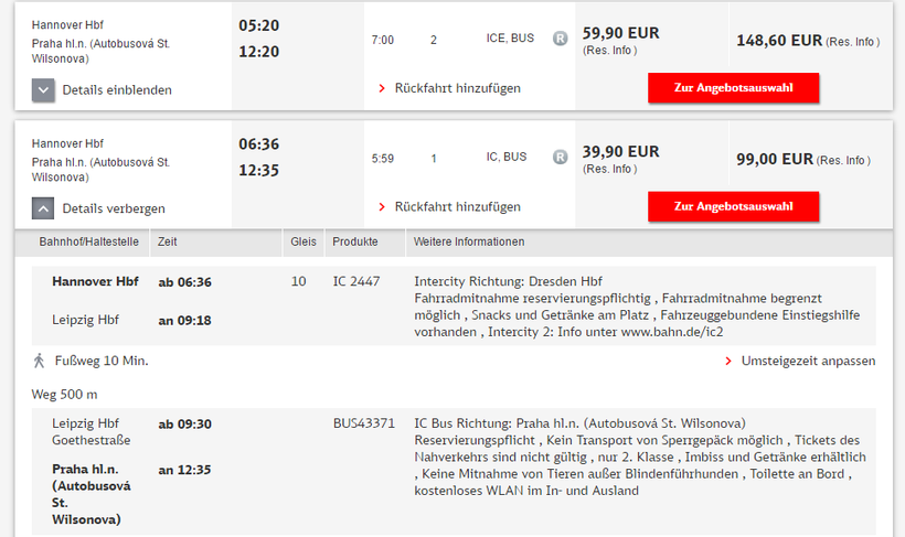 Возможные варианты проезда я смотрела на сайте немецкой железной дороги. И вот нашла следующее: