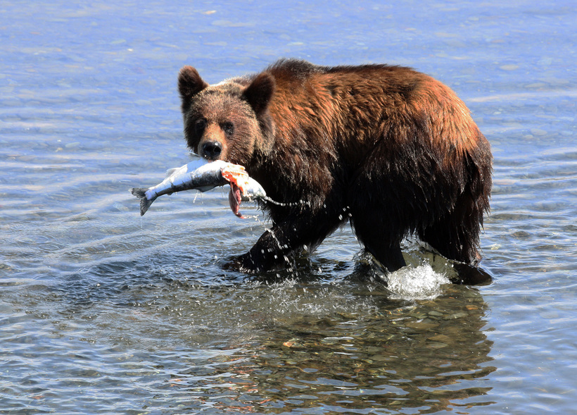 Бурый медведь — это отличный рыболов. Самое лучшее время — это нерест, когда рыба начинает метать икру. Он не может позволить себе упустить такой момент. Любимая рыбка этого животного — форель и лосось.