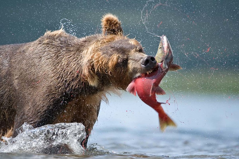 Я думаю, вам известно, что медведи являются большими любителями полакомиться рыбкой. Чаще это происходит как раз в тот период, когда они выходят из зимней спячки. Ценной добычей для медведя являются лосось и форель.