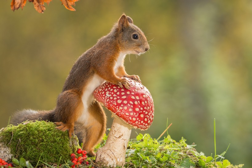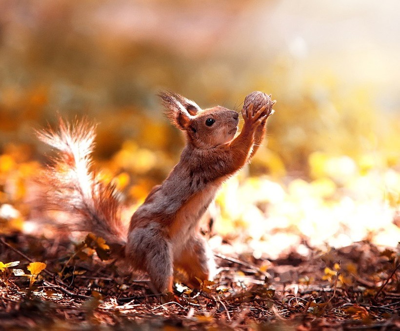Теперь главное — питаются белки, в основном, растительной пищей. Однако меня удивил тот факт, что они способны кушать и животную пищу, например мелких лягушек, насекомых и т.д. Среди растительной пищи они предпочитают грибы, орехи, плоды ягодных растений — грубо говоря, все то, что растет в лесу и съедобно. :)
