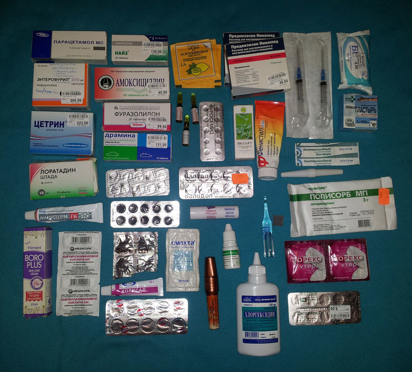 Лекарства всегда должны быть под рукой на случай солнечного ожога, отравления или головной боли.