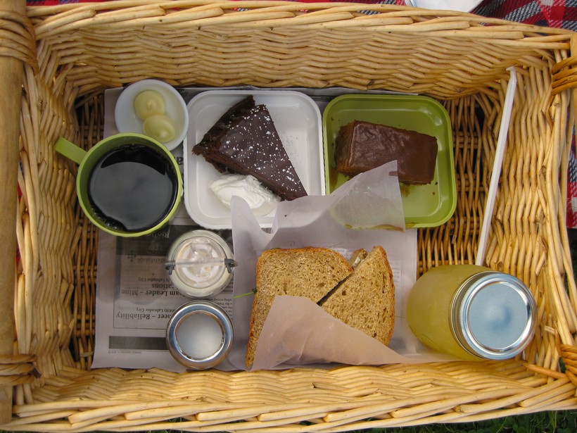 Это только в американских фильмах все просто: корзиночка, в которой тряпочкой накрыты сендвичи и бутылочки с водой, и подстилка. И хватит.