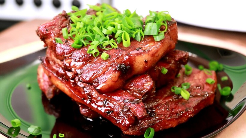 - Свиные ребрышки в грантовом соусе. Ребрышки стоят дешевле чем вырезка, но в маринаде они очень вкусные и не замечаешь маленькую порцию мяса.