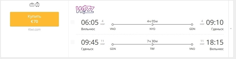 И плюс билеты из Минска в Вильнюс — 48 белорусских рублей (20€).