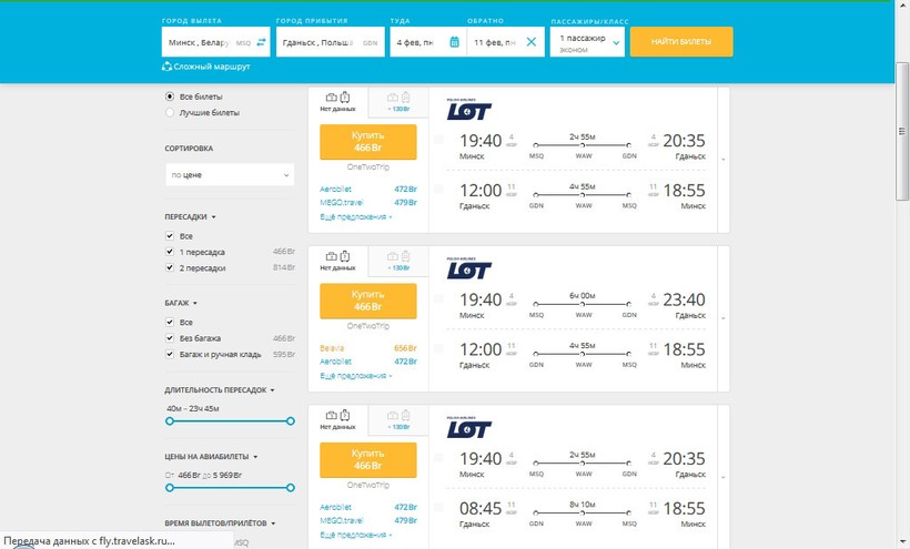 На официальных сайтах LOT, Belavia, Wizz. Но проще покупать через подобные ресурсы, можно сравнить цены.