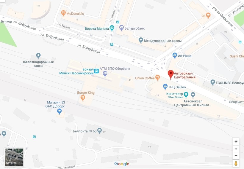 Отъезд с автовокзала Минска (улица Бобруйская, 6).