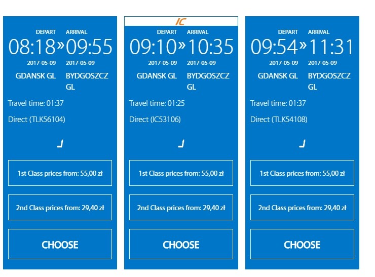 Первый рейс доступен уже в пять утра. Далее поезда курсируют с интервалом от одного часа. Подробнее график движения можно найти на сайте польской железной дороги. Веб ресурс я укажу ниже.Добраться в Быдгощ из Гданьска на поезде можно всего за полтора часа.