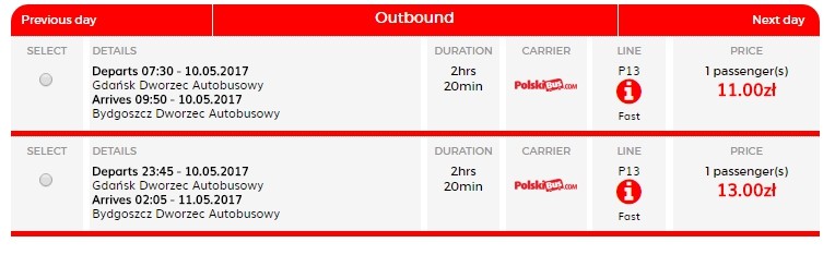 Продолжая тему общественного транспорта, хочу отметить, что из Гданьска в Быдгощ курсируют автобусы от компании PolskiBus.