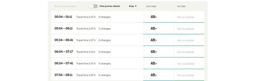 Цена билета составляет 48 шведских крон (по курсу это около 5 евро).