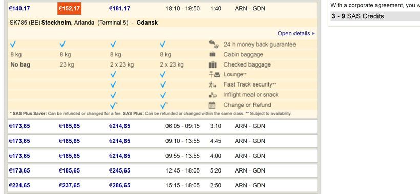 И еще. Существуют рейсы из аэропорта Стокгольм-Скавста до Гданьска, но он к Стокгольму относится чисто номинально и расположен достаточно далеко, так что я не буду рассматривать этот вариант из-за его неудобства.