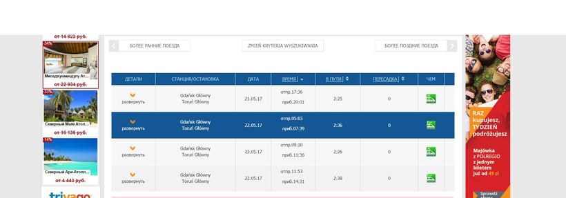 С полным расписанием можно познакомиться на сайте польских железных дорог. Как я уже говорил, едут поезда 2,5 часа.