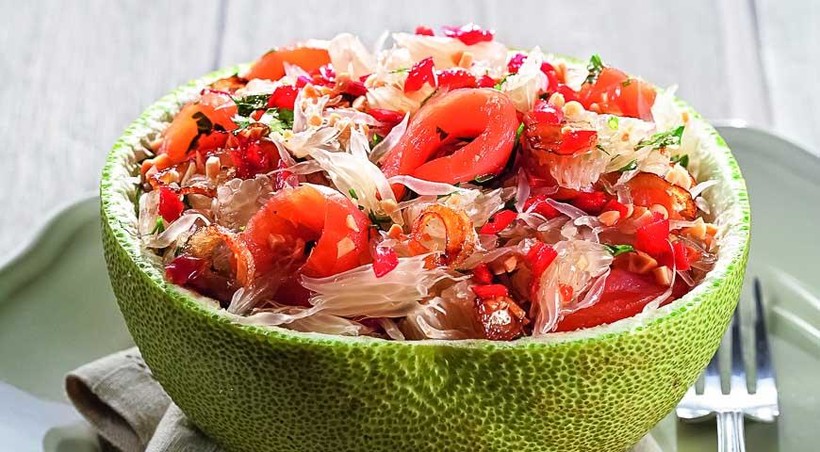 В Таиланде из помело готовят свежие салаты, добавляя к нему креветки, огурцы, красный перец, лук, арахис или кешью, мякоть кокоса или кокосовую стружку и зелень мяты, базилика или петрушки.