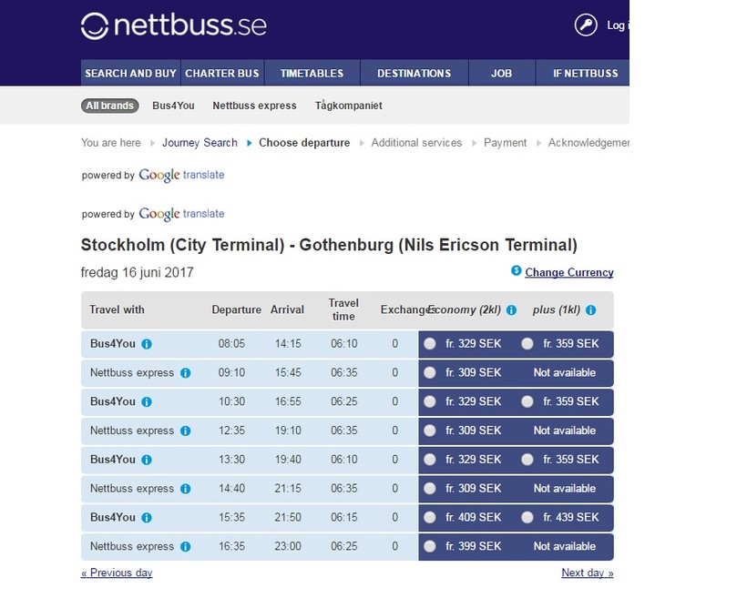 Билеты продаются на сайтах Swebus и Nettbuss.
