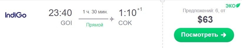Билет в Кочин стоит от 445 рупий (от 6 долларов или 410 рублей).