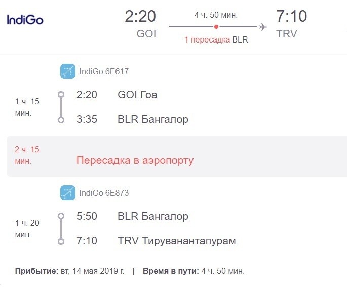 В небе нужно провести полтора часа. Рейс выполняет IndiGo.