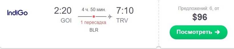 Билет Кочин от 63 долларов (от 4395 рупий или 4020 рублей), а в Тривандрам от 96 долларов (от 6692 рупий или 6120 рублей).