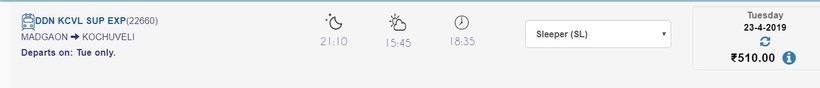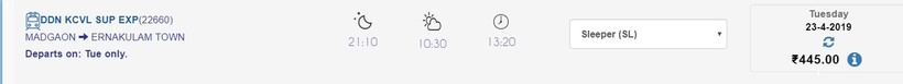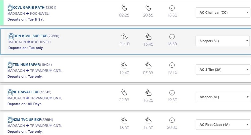 Также из Маргао вы можете уехать в Тривандрам. Актуальное расписание вы можете посмотреть на скриншоте ниже.