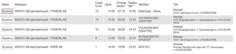 И это лишь фрагмент, все расписание на скриншот не поместилось. Как видно, уехать вообще не проблема. С расположением железнодорожных вокзалов в Минске и Гомеле можно ознакомиться чуть выше, на картах они обозначены.
