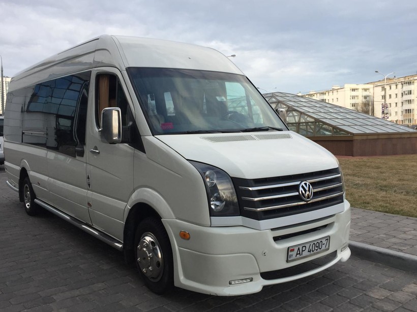 Автобусы, курсирующие по данному маршруту, преимущественно представлены микроавтобусами Volkswagen Crafter. Выглядят они так: