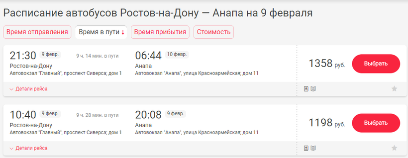 В тот же день автобус «Ростов-на-Дону — Анапа» отправляется с городского автовокзала «Главный» .