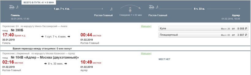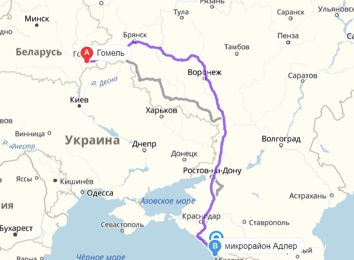 Ниже приведена информация о том, сколько часов вам потребуется, чтобы добраться от Гомеля до Адлера, а также приведена примерная стоимость проезда (средняя цена билета) на том или ином виде транспорта.