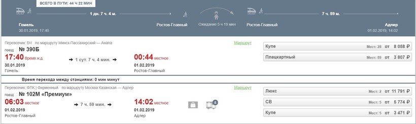 Также в Адлер вы можете добраться и с пересадкой. Ее можно сделать, например, в Воронеже. На дорогу уйдет почти двое суток.