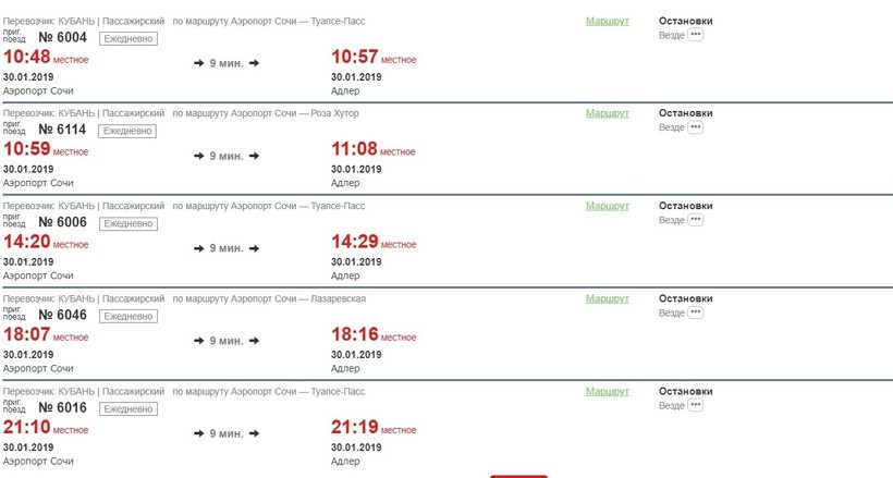Расписание не меняется уже очень давно. Девять минут, и вы окажетесь на ж/д вокзале Адлера.