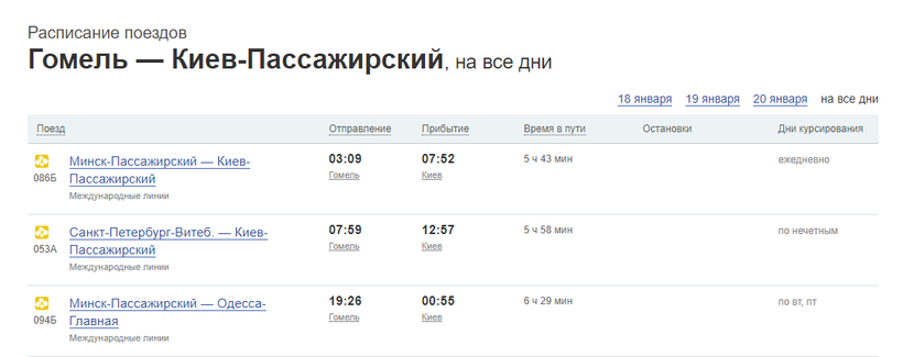 Ниже приведена информация о том, сколько часов вам потребуется, чтобы добраться от Гомеля до Борисполя, а также приведена примерная стоимость проезда (средняя цена билета) на том или ином виде транспорта.