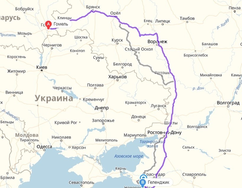 Гомель и Геленджик разделяют 1700 километров по трассе. Крупные города, которые будут на пути: