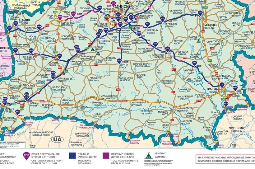 Есть минус в поездке по данным трассам для автомобилей на иностранных номерах — вся дорога по маршруту для иностранцев будет платной (кроме автомобилей с номерами стран-членов Таможенного союза), и поездка обойдется в дополнительные 24 евро или 1850 руб. Информацию о платных дорогах в Беларуси рекомендую посмотреть на сайте системы BELTOLL.