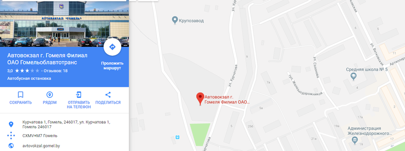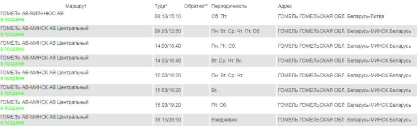 Купить билеты на автобус можно на автовокзале Гомеля по ул. Курчатова, 1.