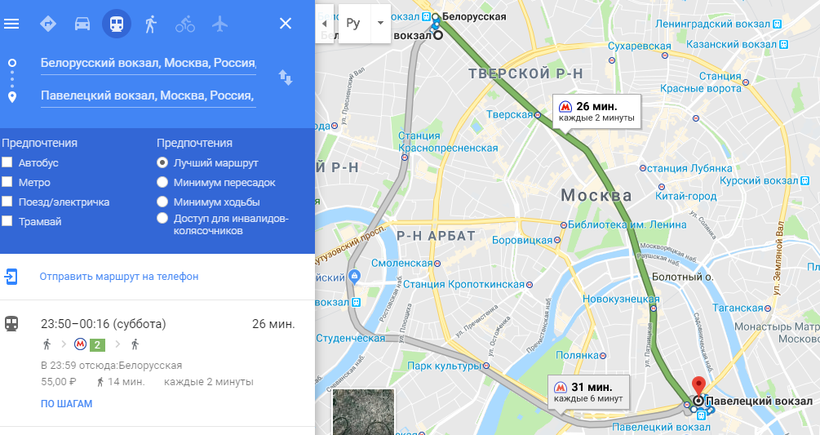 Рейсы из Гомеля в столицу России совершаются ежедневно, но самым удобным для совершения пересадки является поезд 055Ь, который отправляется в шесть часов вечера. В пути он находится двенадцать с половиной часов и в шесть утра прибывает на Белорусский вокзал Москвы. Оттуда нужно попасть на Павелецкий вокзал (удобнее всего на метро).