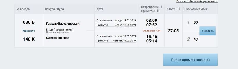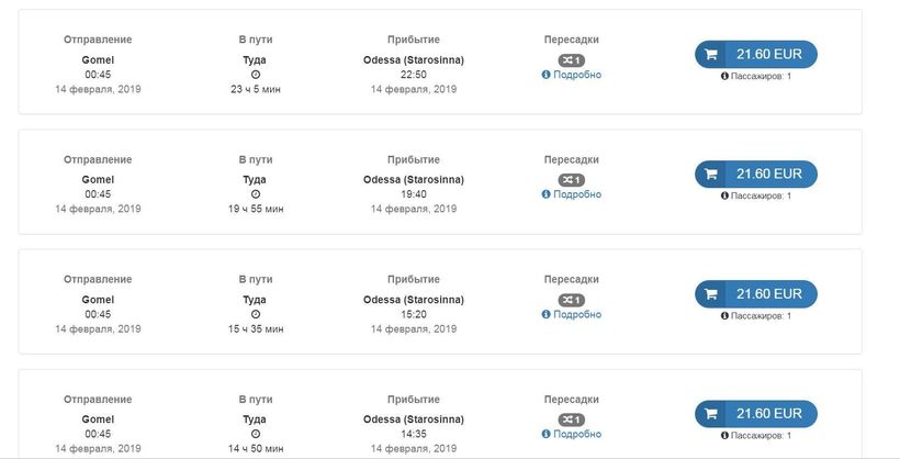 Цена билета от Гомеля до Одессы составляет 21,6 евро (примерно 54 белорусских рубля).