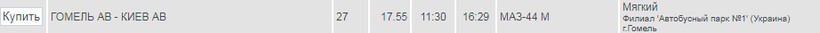Билет на автобус от Гомеля до Киева стоит 17,55 BYN или 535 рублей.