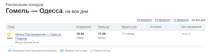 Также есть возможность выезда в 11:30 из Гомеля, чтобы добраться до Коблево, с пересадками в Киеве и Одессе, а также в Киеве и Умани.