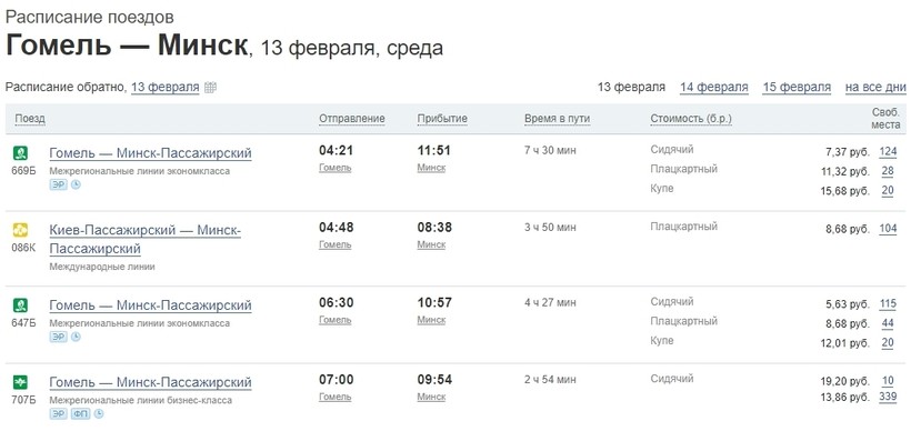 Из Гомеля в белорусскую столицу ежедневно курсирует немало поездов. Это как межрегиональные линии эконом класса, так и международные пассажирские.