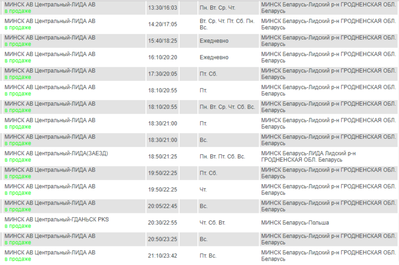 Из Минска в Лиду можно уехать с 8.20 утра до 22.10 вечера каждые 1-1,5 часа, а время в пути составит 2,5 часа.