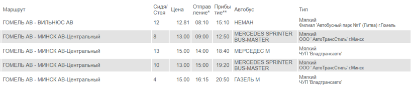 Курсируют по маршруту как большие автобусы, так и маршрутки на 19-20 мест. И очень рекомендую при покупке билета уточнять время в пути, ведь некоторые автобусы из Гомеля до Минска следуют через деревни, что значительно увеличивает продолжительность поездки.