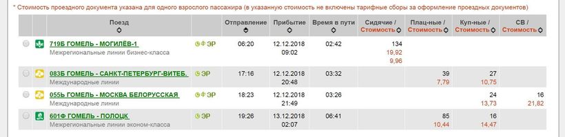 Это официальный сайт белорусских железных дорог. Что можно сказать насчет поездов? Прежде всего, можно уверенно утверждать, что они отправляются из Гомеля и прибывают в Могилев в более-менее удобное время, если не брать первый и последний рейс (в первом случае это слишком раннее отправление, а во втором прибытие в 2 часа ночи).