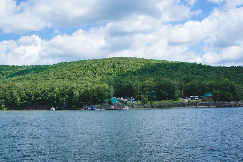 Окружают водоем горные вершины, с которых открывается неповторимый вид на водную гладь. Для любителей дикого отдыха отличным решением будет пологий склон водохранилища, где можно поставить палатку, развести костерок.