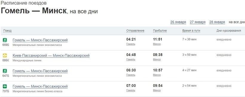 Путешествие поездами через Минск стоит от 11 белорусских рублей (330 российских рублей).
