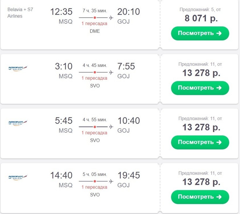 Билеты на самолет до Нижнего Новгорода от 260 белорусских рублей (от 8000 российских рублей).