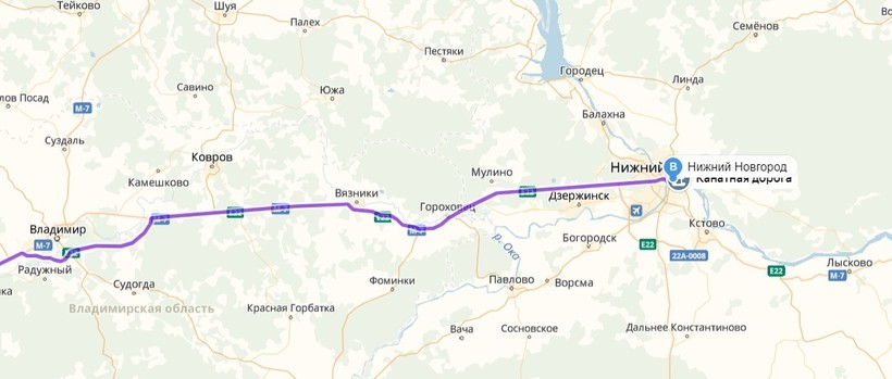 Расстояние по трассе — 230 километров. Здесь от двух до четырех полос в каждом направлении. До Нижнего Новгорода мчитесь именно по Южному обходу (так сказать, новая часть трассы, которая была открыта примерно 18 лет назад). Разделительное ограждение здесь присутствует, правда, не везде. Придорожная инфраструктура развита нормально. Заправочных станций и заведений общественного питания хватает. Еще момент: гражданам Белоруссии на территории Российской Федерации без оформления визы можно находиться до 90 дней.