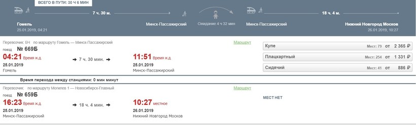 Прямые поезда по маршруту Гомель — Нижний Новгород не курсируют. Нужно ехать с пересадкой, ее лучше всего сделать именно в Минске. Напишу про этот вариант (оба поезда ходят каждый день):