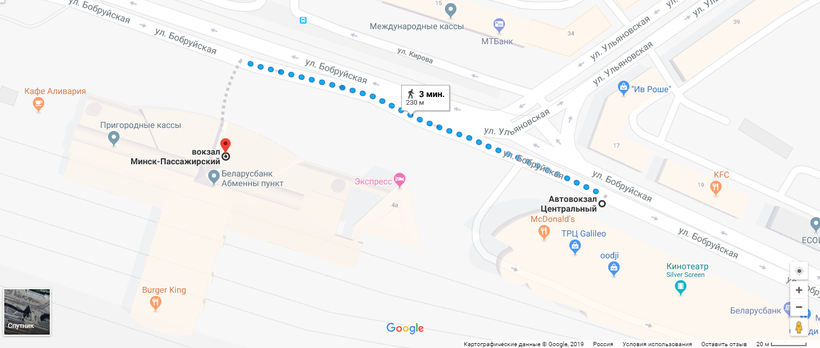 Поезд из Гомеля довезет до ж/д станции Минск-Пассажирский (Привокзальная площадь, 3), а автобус до Центрального автовокзала Минск (ул. Бобруйская, 6). Ж/д вокзал и автовокзал буквально в нескольких минутах ходьбы друг от друга.