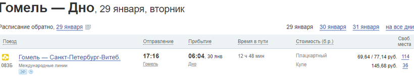 Из Гомеля до Дна поездка обойдется от 69,64 BYN или 2150 руб.