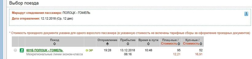 Цена билета в плацкартный вагон составляет чуть больше 12 белорусских рублей (около 5 евро).