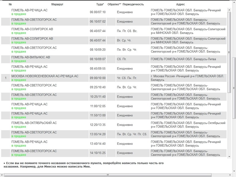 - онлайн на сайте Белтранскома (не на все).